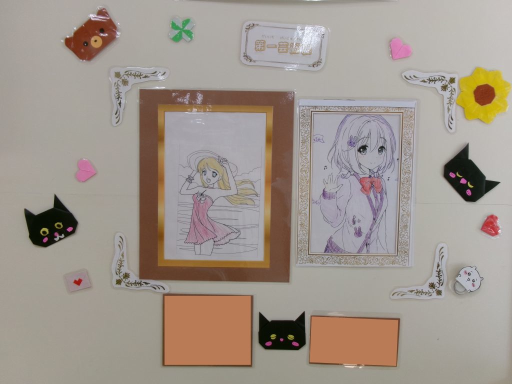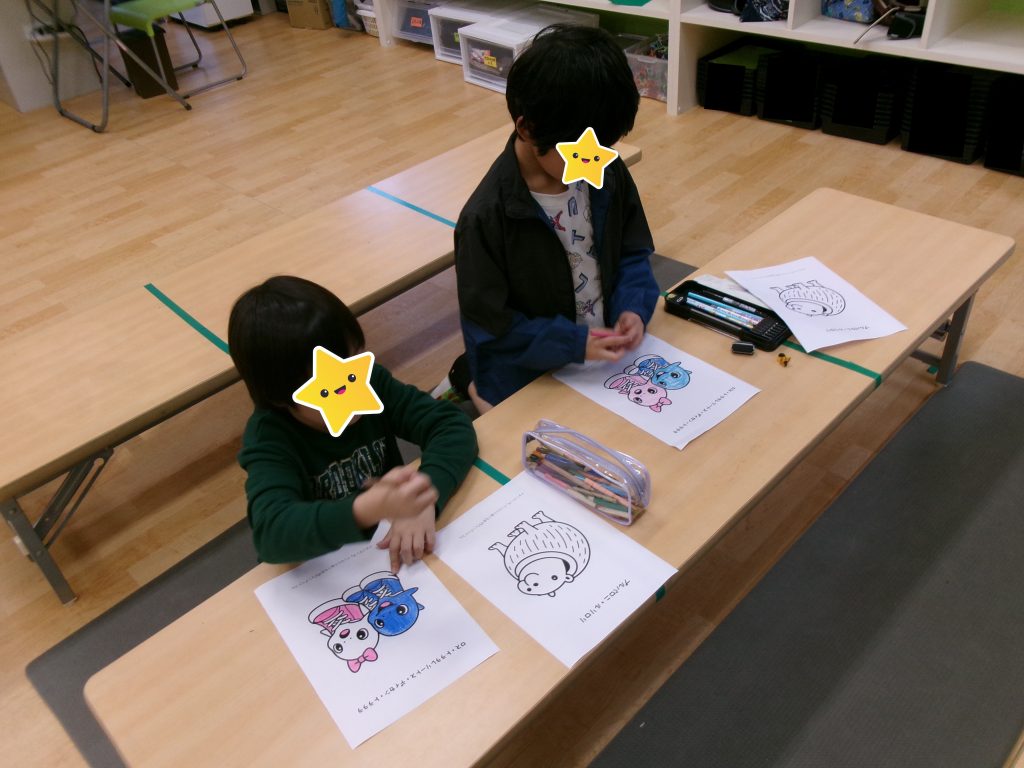 お友達同士で、同じ塗り絵に挑戦。違うのは色だけなのに、別のキャラクターのような雰囲気を出しています。