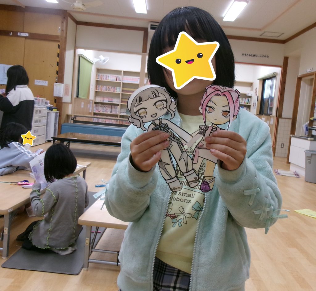 ここで、皆さんに質問です。仲の良い2人のお友達は色鉛筆やハサミを使って一体何を作っているでしょうか?正解は…