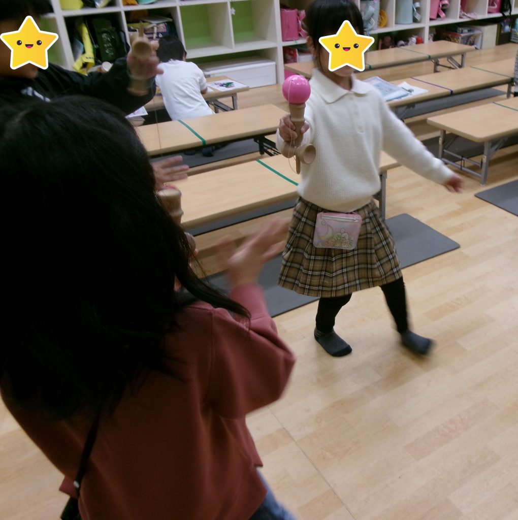 一発で成功。お友達からも拍手が。一発で決めると嬉しいね。思わず教室を走りそうになる気持ちを抑え、満面の笑顔!
