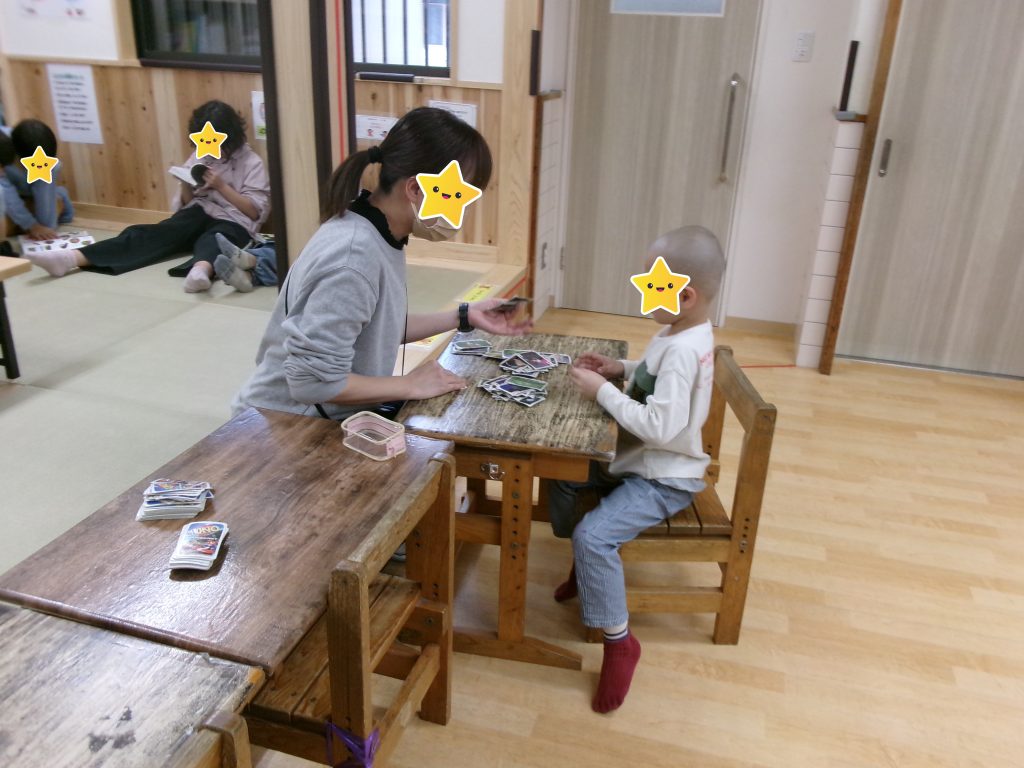 トランプで先生とハヤブサの勝負。ハヤブサを覚えたばかりの1年生。先生相手に真剣勝負。勝つのはどっち?