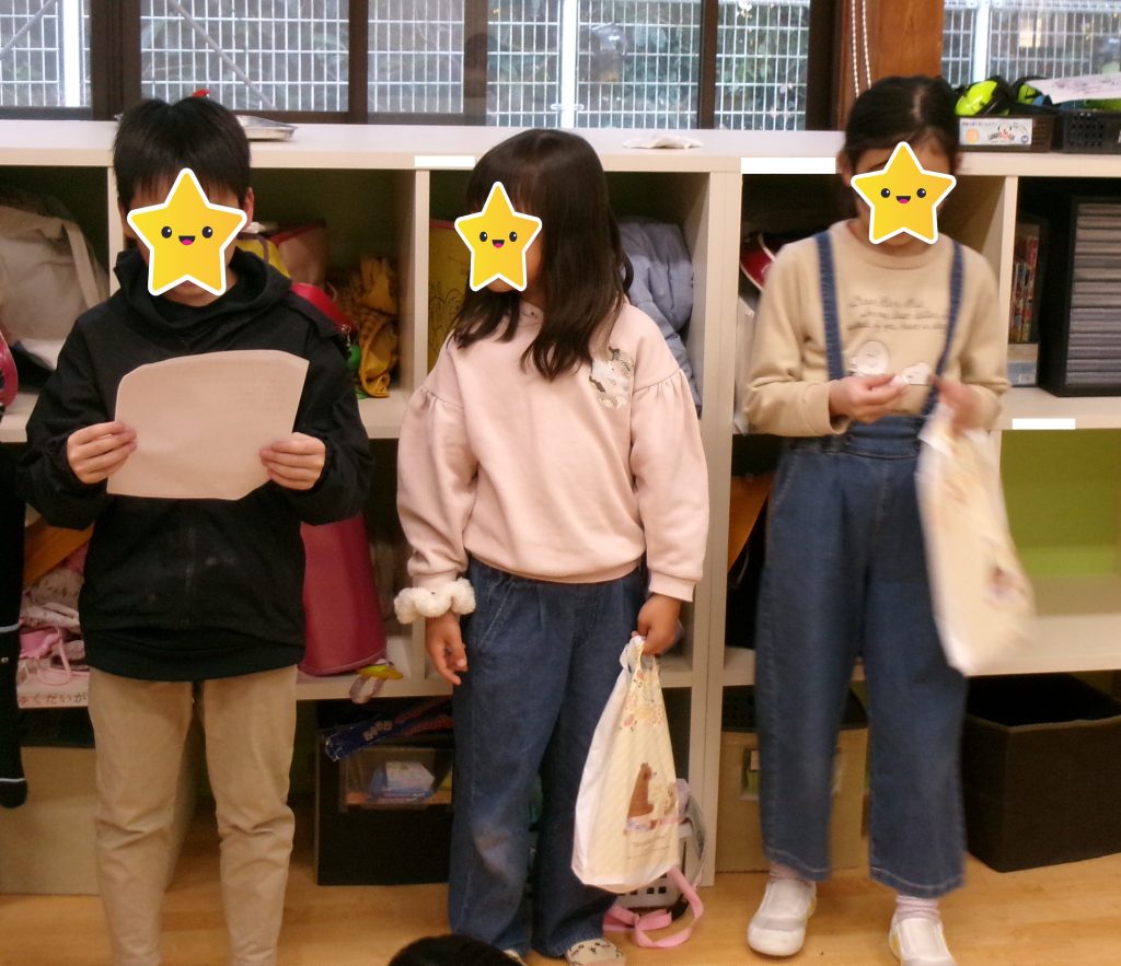 プレゼント渡しが終わった後、みんなで誕生日のお友達に「おめでとう」を伝え、誕生日会は終わりました。急遽変わって司会を務めてくれた男の子も頑張ってくれて誕生日会は大成功。